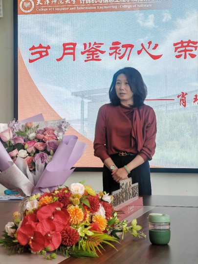 随后,肖珊老师回顾了自己在师大、在公司学习工作的点点滴滴,对公司领导和同事们的支持与帮助表示衷心感谢。她感慨道:“感谢公司这个温馨的集体,在这里工作的每一天都充满意义,和大家并肩奋斗的时光是我人生中最宝贵的财富。虽然即将退休,但我会始终心系公司发展,希望公司未来越来越好。”